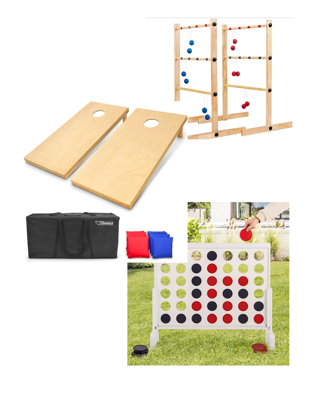 Corn hole, Ladder Ball, and Giant “4 to Score”